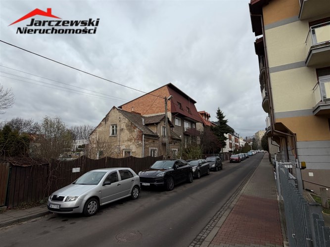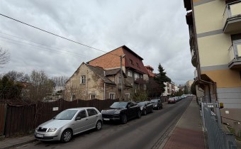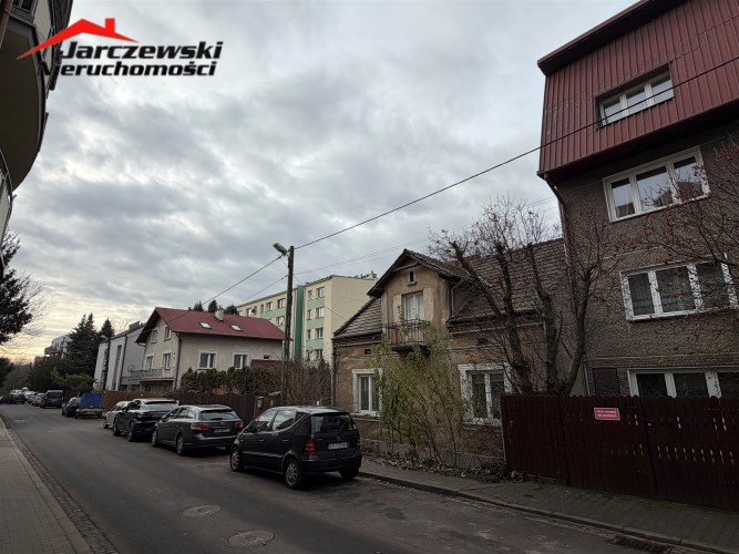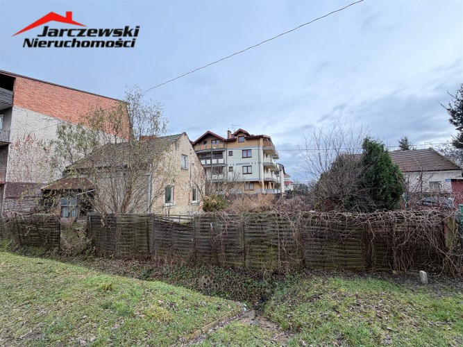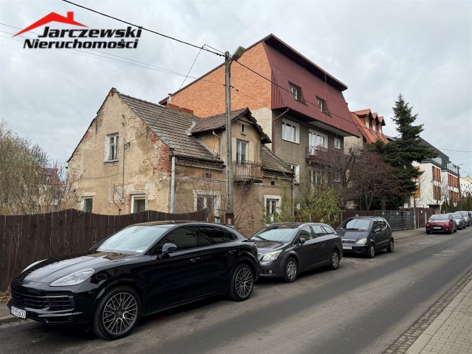 Działka zabudowana starym domem (brak konserwatora) wybudowanym w granicy.