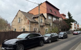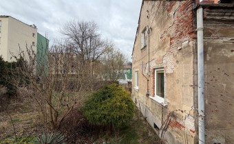 Działka zabudowana starym domem (brak konserwatora) wybudowanym w granicy.