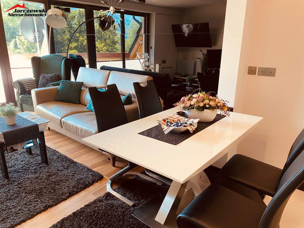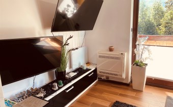 Apartament Ekskluzywny - to oferta dla wymagających klientów. Mieszkanie o powierzchni 55 mkw. przeznaczone jest dla maksymalnie 6 osób, posiada 2 osobne, zamykane sypialnie, duży salon, aneks kuchenny oraz łazienkę z prysznicem. Z salonu wyjście na taras z widokiem na Tatry. 2 piętro, loggia, alarm z powiadomieniem, klimatyzacja, inteligentne sterowanie ogrzewaniem przez telefon, internet światłowodowy