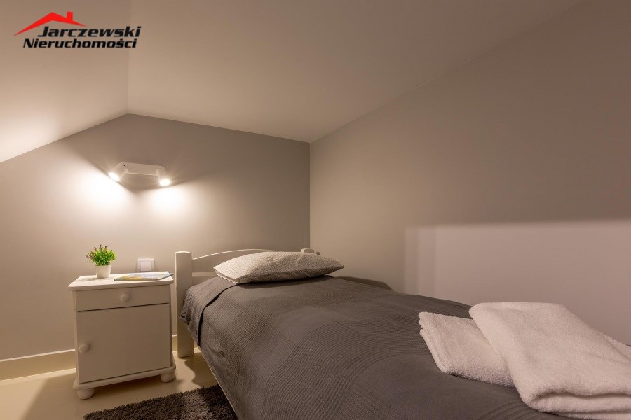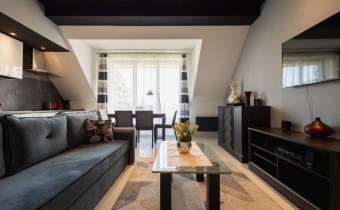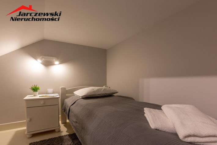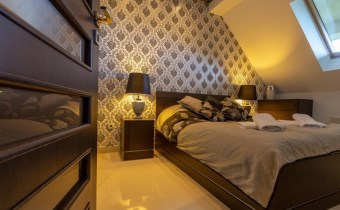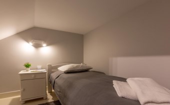 Składa się z salonu z aneksem kuchennym, dużej sypialni, drugiej małej sypialni pod schodami.