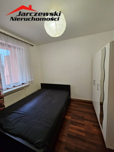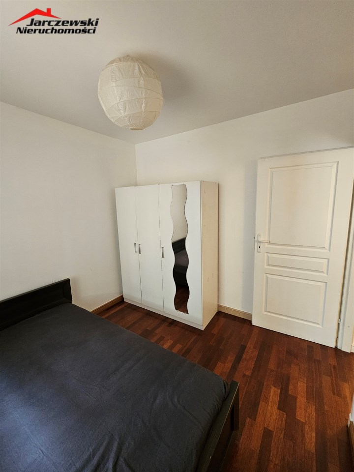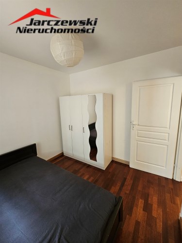 Dwa pokoje z aneksem kuchennym, częściowo umeblowane (łóżko, komoda, szafa).